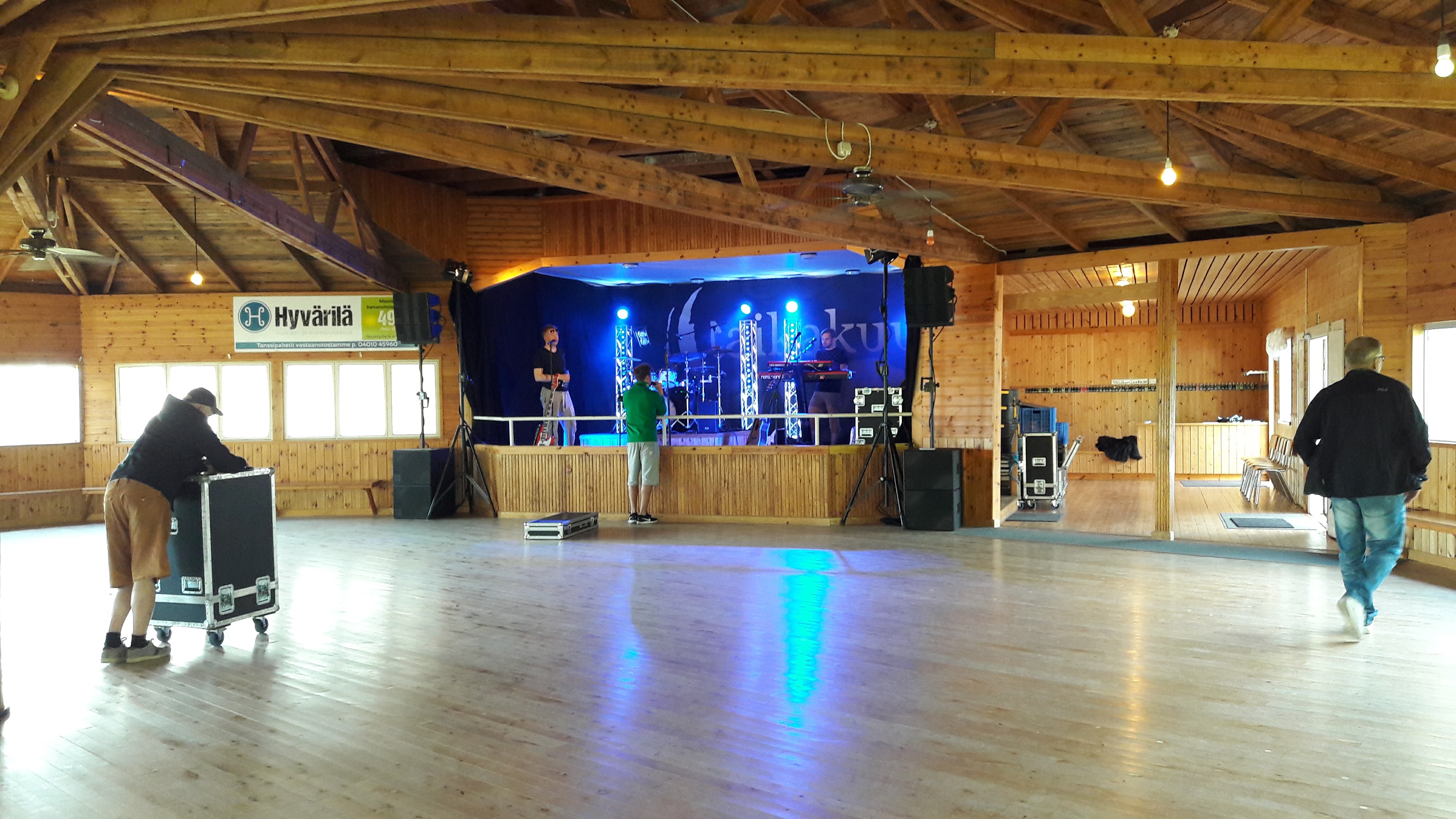 15-vuotisjuhlatanssit Kajasteen lavalla kesällä 2017, Taikakuu valmistautuu illan keikkaan.